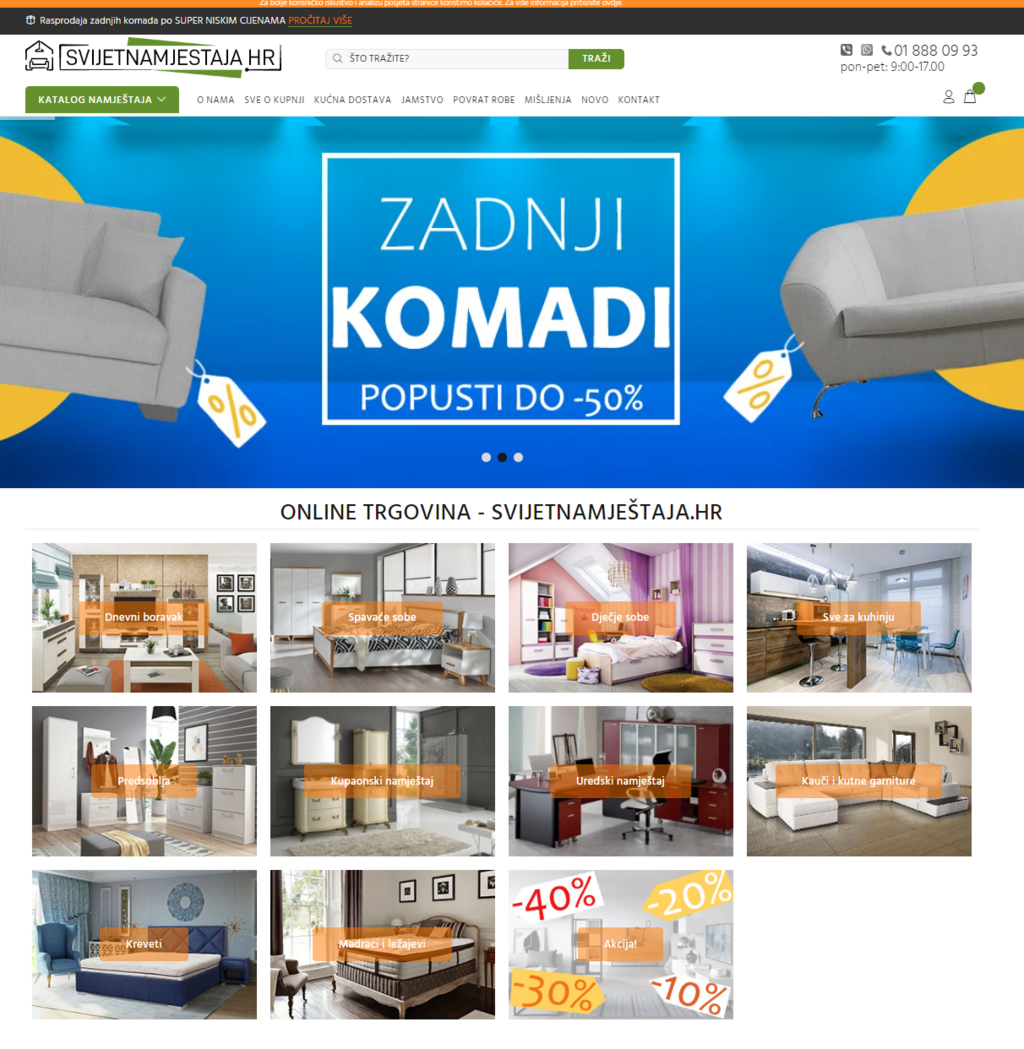 Online furniture store in Croatia. Delivery is carried out throughout Croatia by their own transport and transport companies. Optimization solutions have been implemented in the store, which has significantly increased the company's revenue